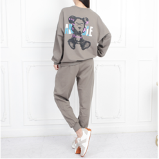 12. 순이들 여성 겨울 기모 곰 테디베어 맨투맨 조거상하세트 트레이닝복 세트