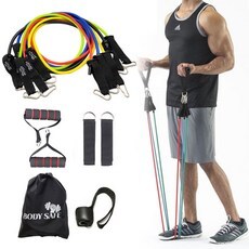 11. 바디세이프 멀티 튜빙밴드 세트 근력 운동 헬스 저항 운동용 탄력 고무밴드, 튜빙밴드 세트 150LB