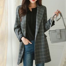 9. 여성 봄 가을 정장자켓 체크 모직 코트 빅사이즈 자켓